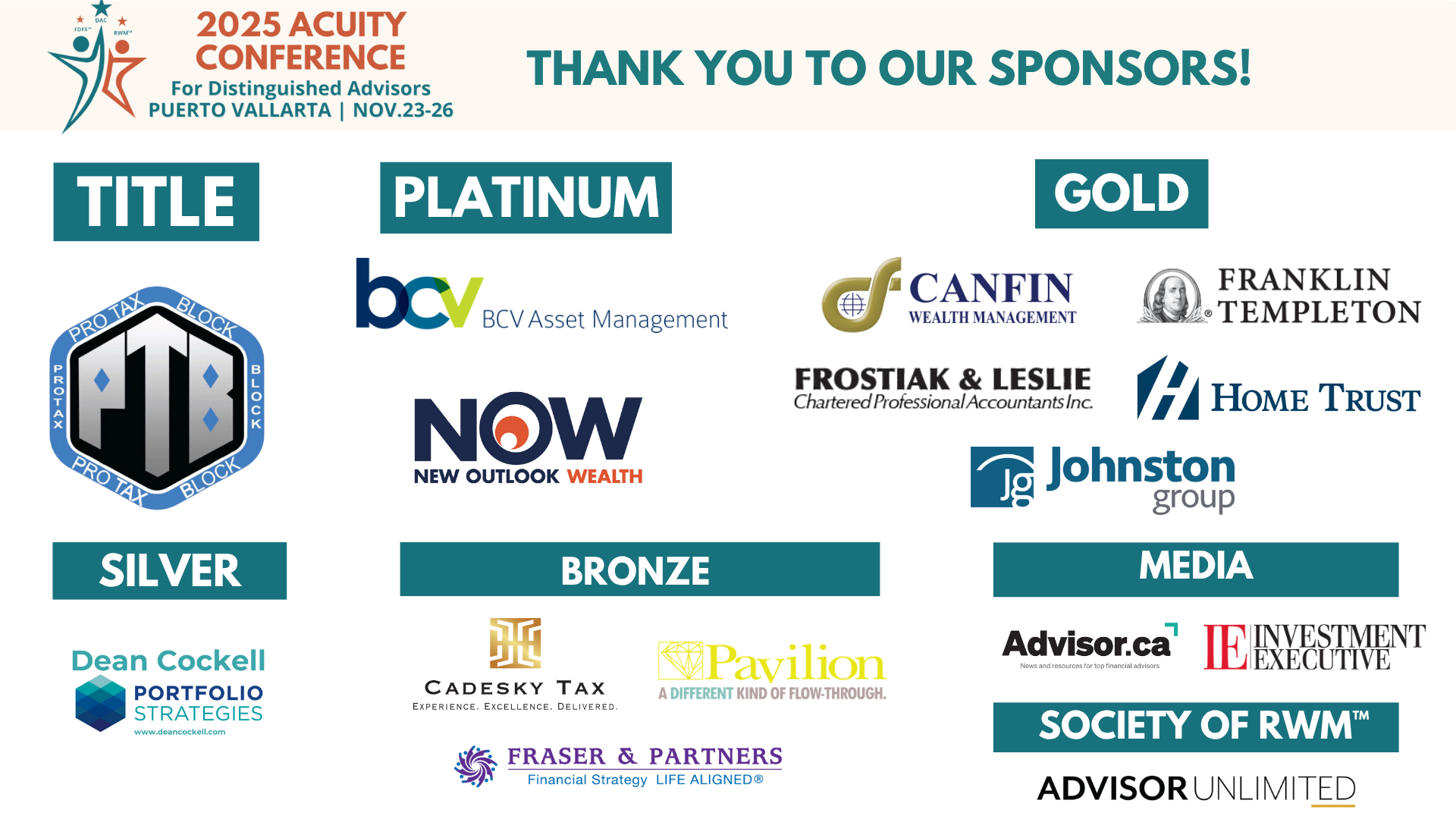 Sunday evening continues with one of the most anticipated events: the Acuity Distinguished Advisor Awards Dinner and awards, supported by Dean Cockell and Portfolio Strategies.