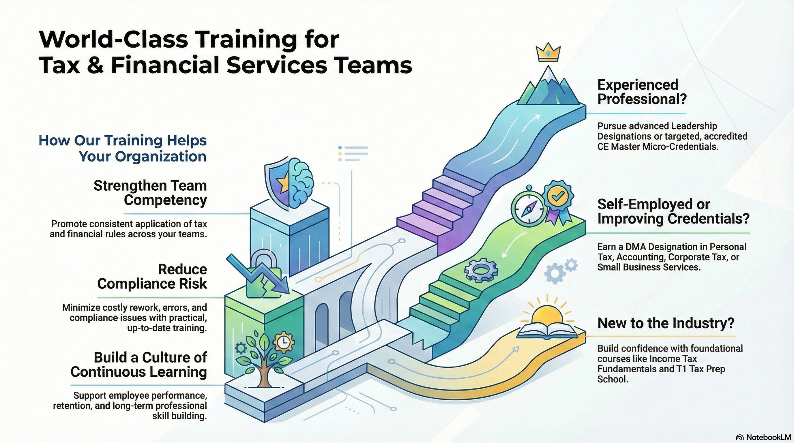 The Backdrop. Well-trained teams navigate technical complexity with greater confidence, adapt as roles evolve, and deliver more consistent client service. Knowledge Bureau supports this need with customizable workplace training pathways designed specifically for public practices, aligning education to roles while helping firms build confident, future-ready teams.